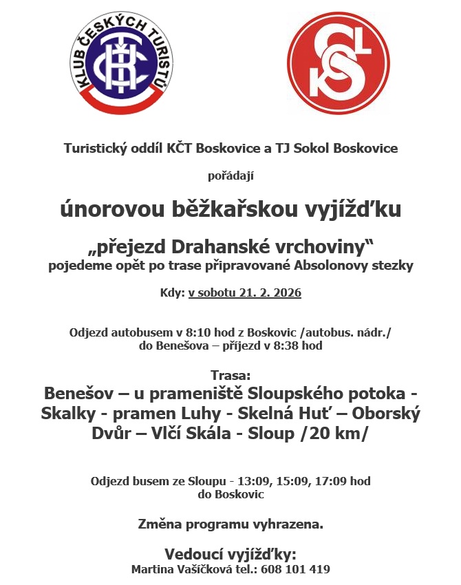 Místo konání: klubovna Sokolovny v Boskovicích /1. patro/